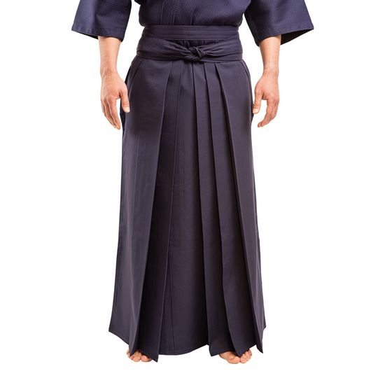 The classic Japanese cut Hakama is made from polyester rayon (Tetron) a fabric which is a great looking and easy-care material for Hakama as it holds its shape well, folds easily and is very easy to keep looking clean and smart.